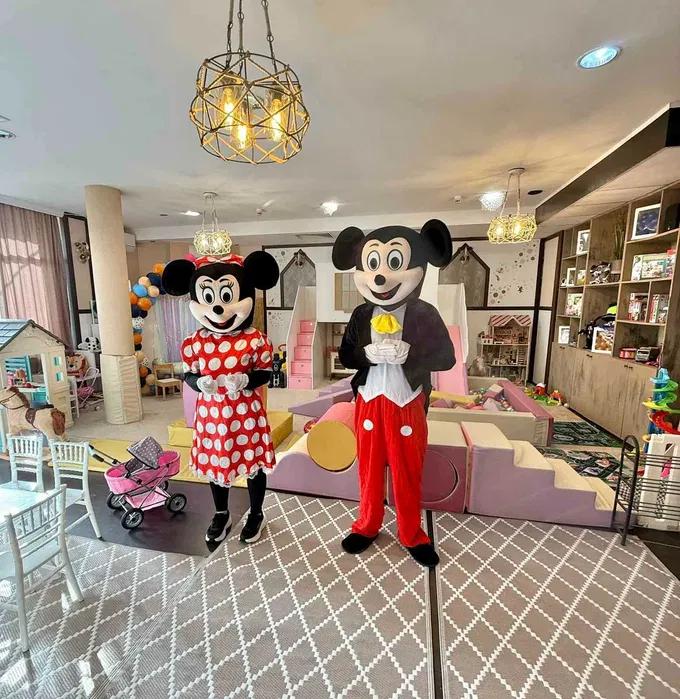 Професионален аниматор в костюм на Мики Маус: Нашият опитен аниматор ще влезе в ролята на самия Мики, за да забавлява и ангажира децата.